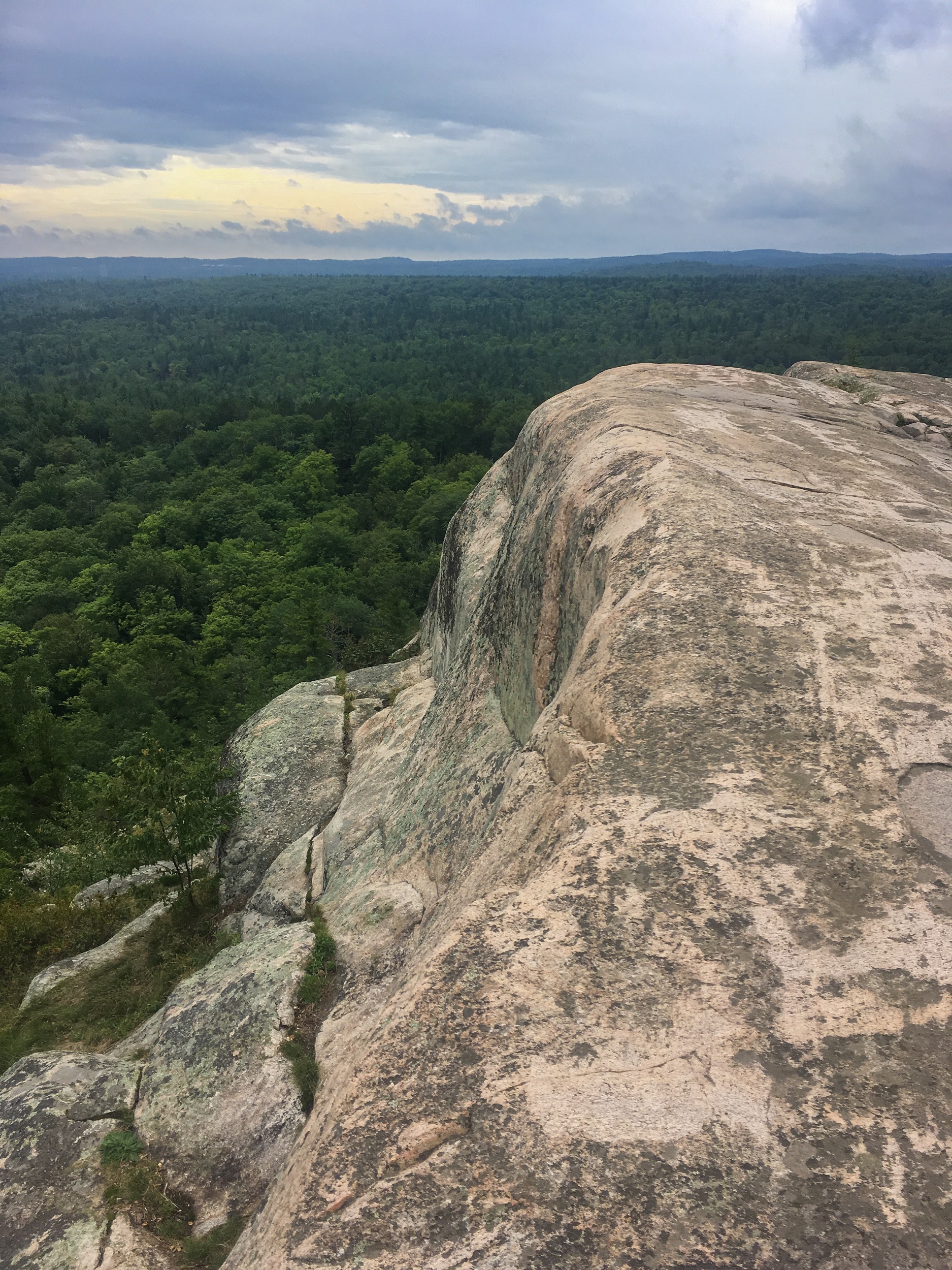 Hogback Mountain (referred by locals simply as Hogsback), is a challenging hike to a remote peak in the southern portion of the Huron Mountains. The 1,220 ft peak is absent of vegetation and exhibits granite slab outcroppings rewarding the strong hiker with 360 degrees of unobstructed views of Lake Superior to the east and endless stretches of undeveloped forest and hills to the north and west. It’s one of the best views in the UP!